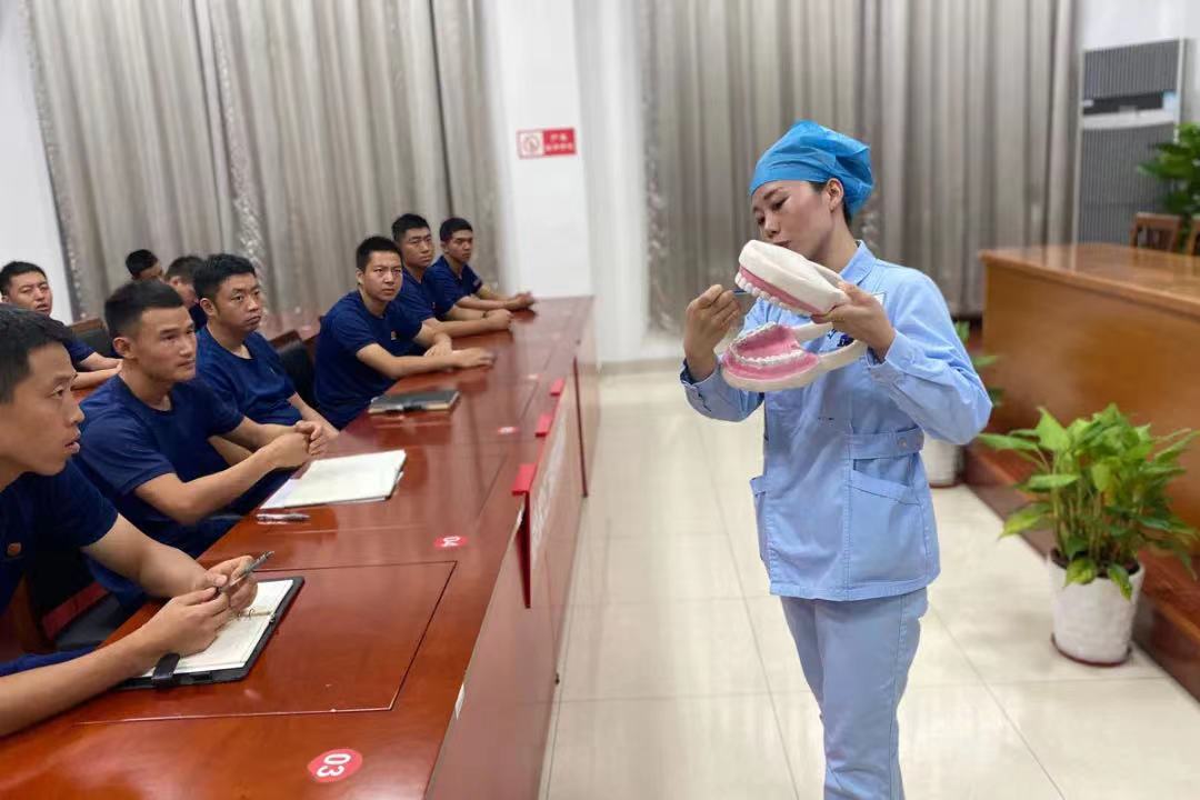 簽約儀式結束后,醫院“藍生健康行”講師團成員、口腔科護士骨干王秋實為與會消防指戰員作口腔健康科普講座。