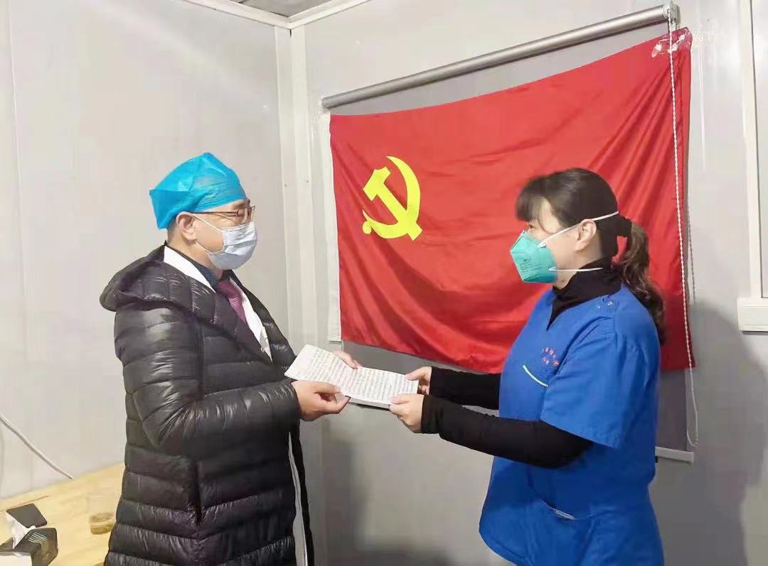 “要說三姐妹向黨組織遞交入黨申請書,不得不說一說我們方艙醫療隊的老黨員王坤偉。”醫院黨支部書記、腫瘤科主任肖建這樣說,王坤偉醫生作為天佑醫院的一名老黨員,在緊急時刻,義無反顧地報名‘請戰’,作為相對年長的醫生,沖在前、干在前,發揮著榜樣的作用,激勵著全體隊員奮勇前進。