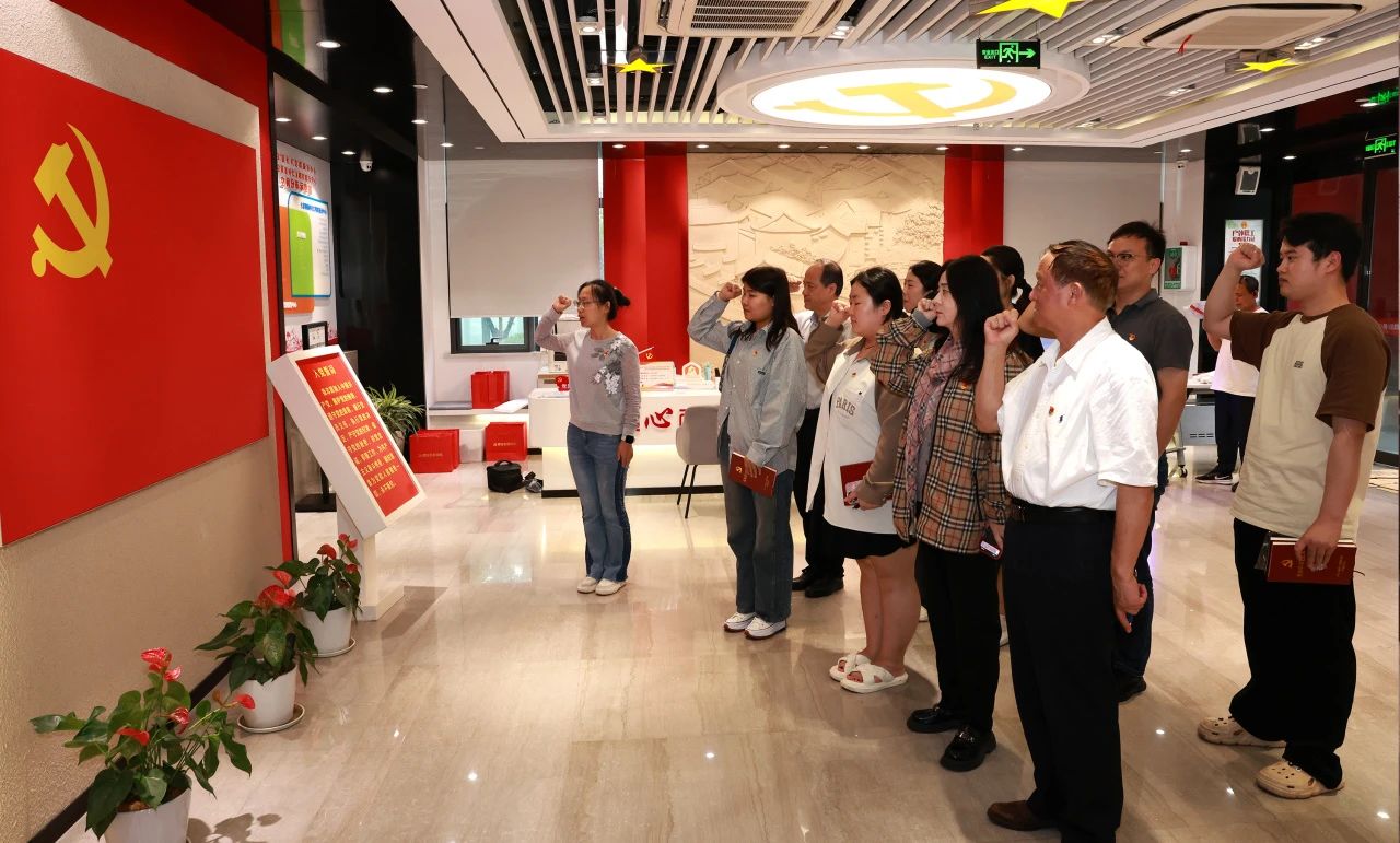 “我志愿加入中國共產黨……隨時準備為黨和人民犧牲一切,永不叛黨。”在七寶黨群服務中心館內,黨員們在醫院黨支部副書記趙宇蘭的領誓下,重溫入黨誓詞,用鏗鏘有力的誓言表達出內心堅定的理想信念。