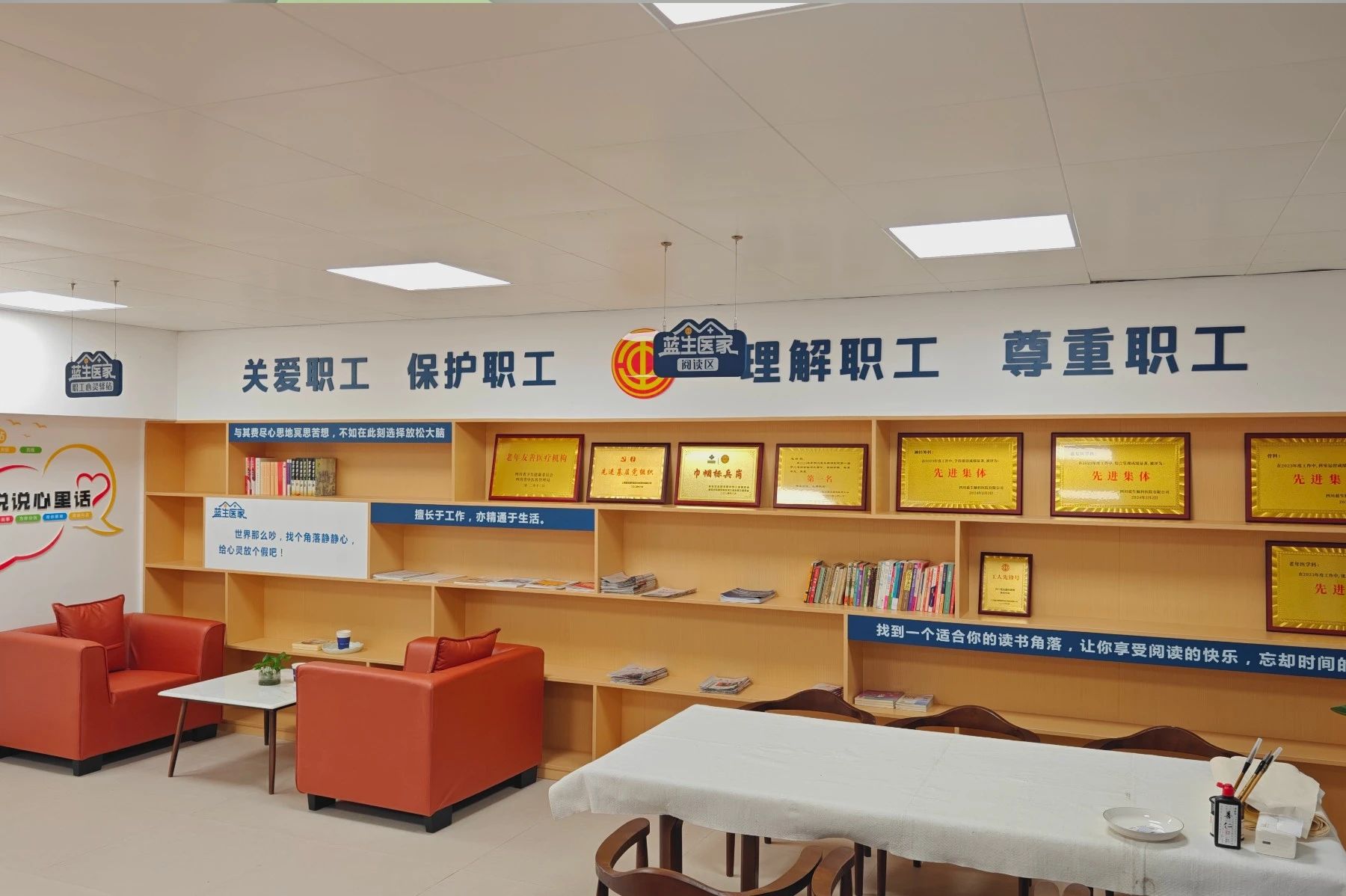 職工之家位于醫(yī)院4號樓六樓,設(shè)計巧妙融合了現(xiàn)代簡約與傳統(tǒng)美學(xué),為職工打造了一個集休息、學(xué)習(xí)、交流與放松于一體的全方位多功能空間。這里設(shè)有舒適的休閑區(qū),供職工放松疲憊身心;運(yùn)動區(qū)配備了齊全的健身設(shè)施,鼓勵職工保持活力與健康;溫馨的閱讀角則提供了豐富的醫(yī)學(xué)書籍與人文讀物,滋養(yǎng)心靈,拓寬視野。