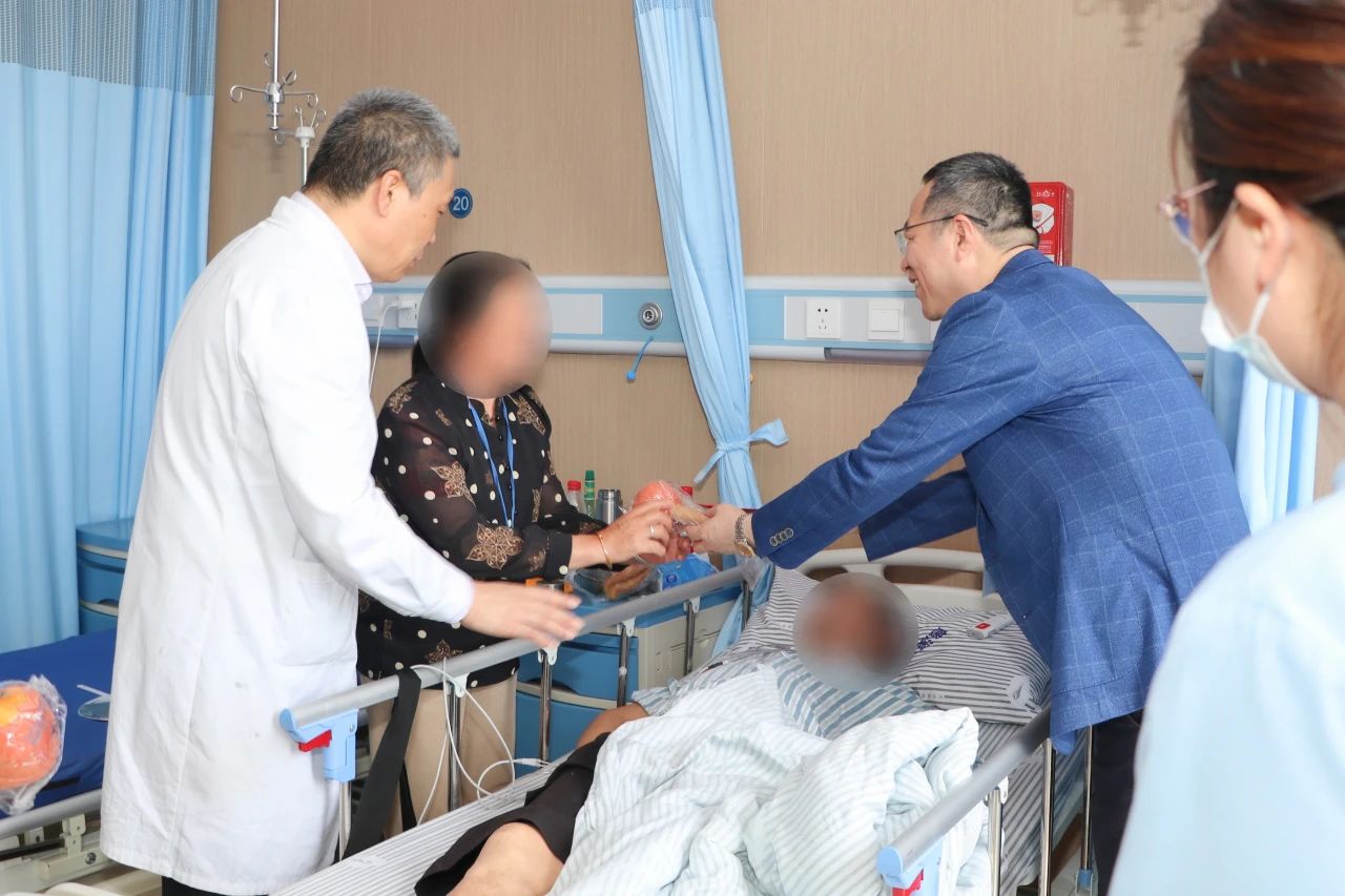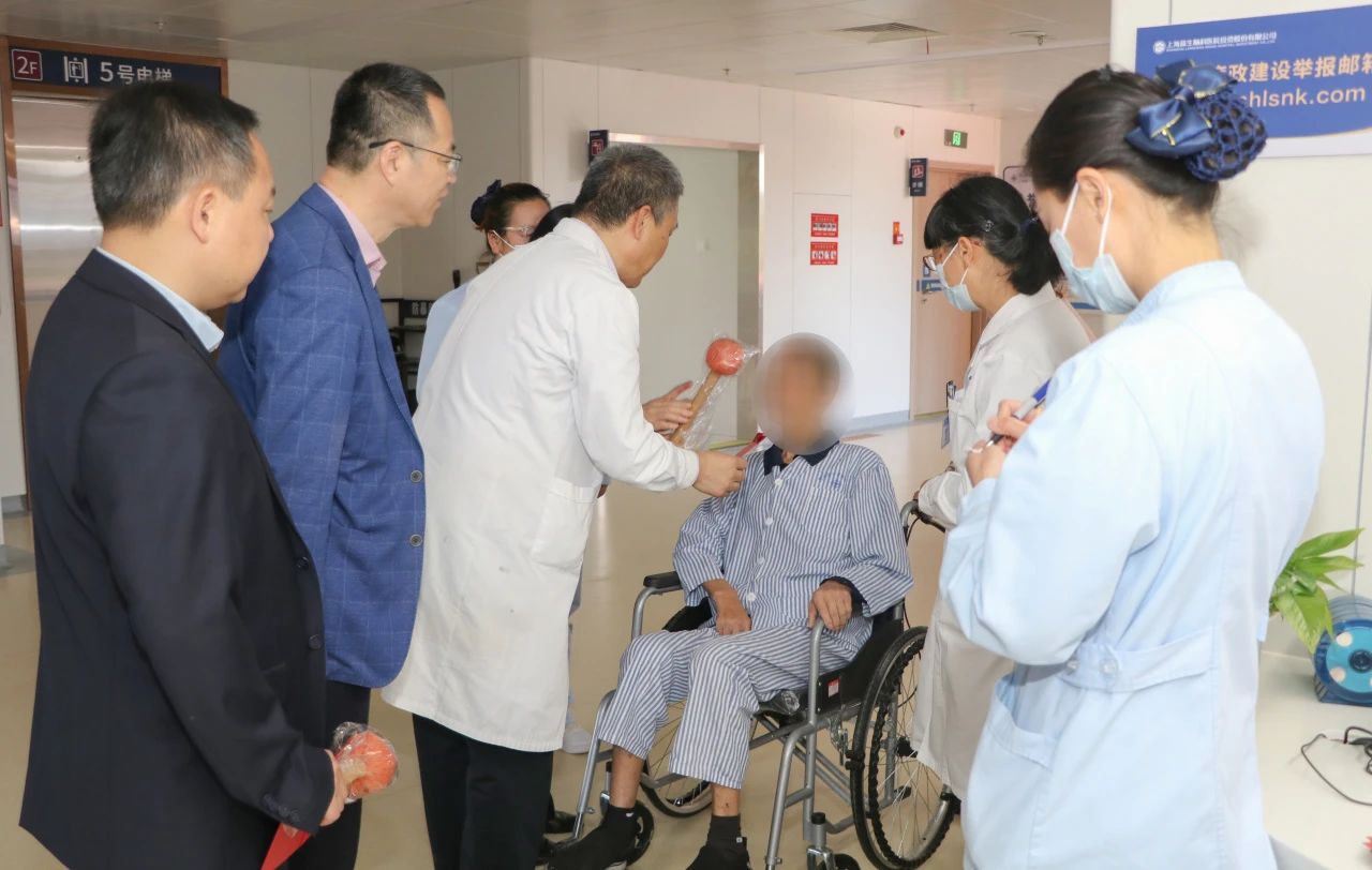 4月29日,院領導帶領醫護團隊與志愿者組成慰問小組,帶著精心準備的“溫暖禮包”走進各個病區。每到一處,為患者送上慰問信與中醫養生錘——前者滿載真摯祝福,后者可通過穴位按摩緩解不適、促進血液循環。“今天感覺怎么樣?治療上有什么需求盡管跟我們說。”在病床前,醫護人員握著患者的手親切交談,詳細了解病情進展與住院感受,用通俗易懂的語言講解康復注意事項,鼓勵患者保持樂觀心態。溫暖的話語、真誠的關懷,讓白色病房洋溢著家的溫馨。“住院這些天,護士每天按時提醒吃藥,醫生查房時比家人還細心,現在連院領導都來看我們,真的特別感動!”患者王先生的一番話,道出了住院患者的共同心聲。