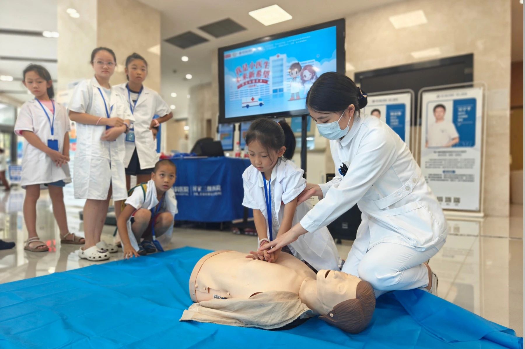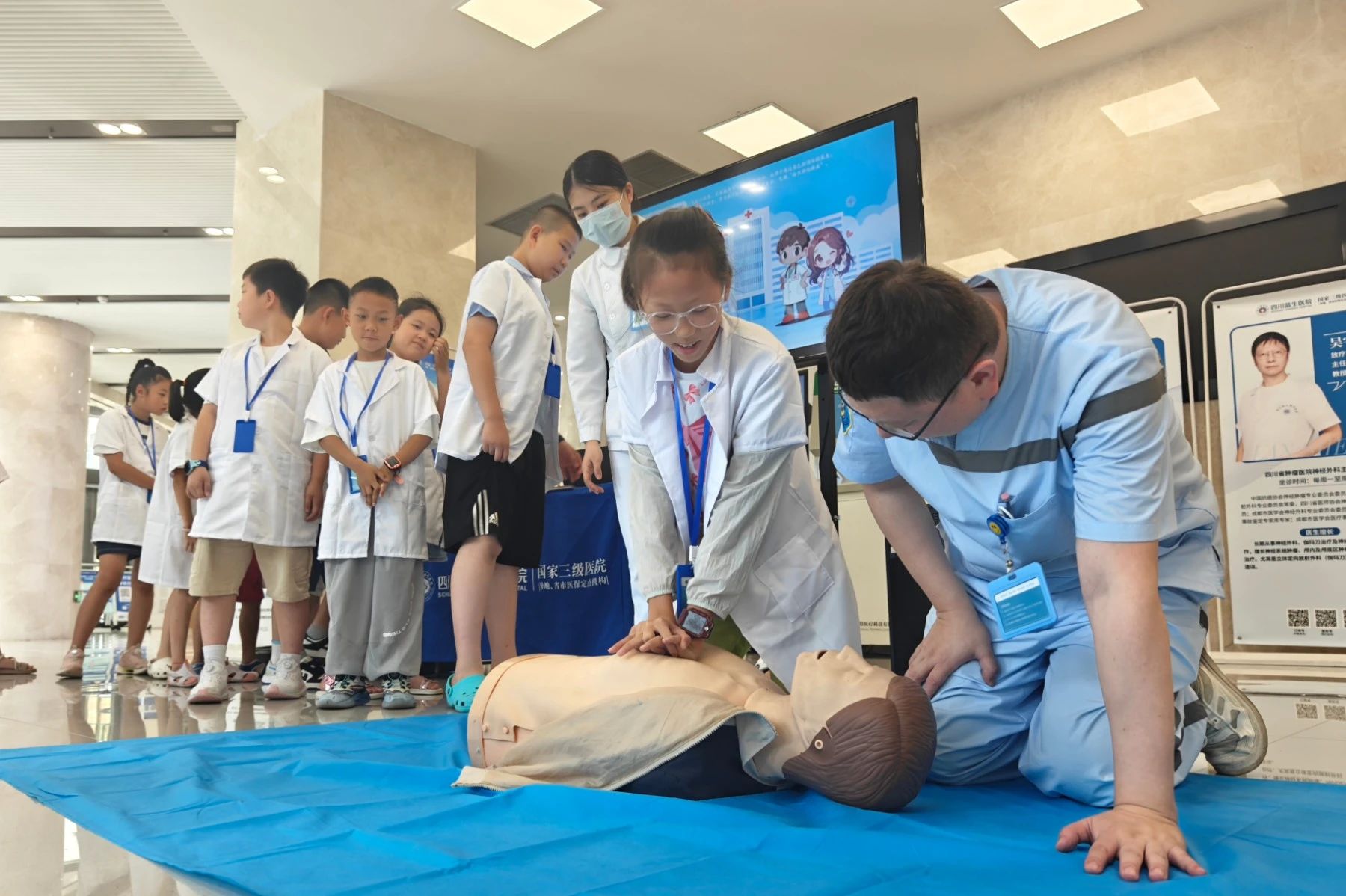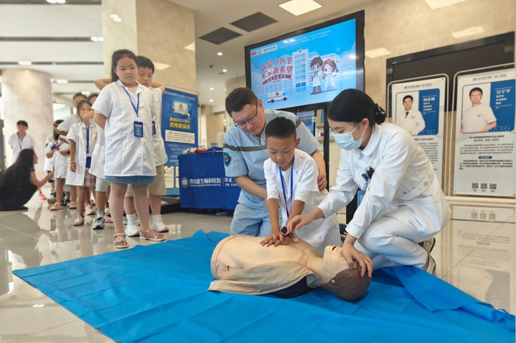 7 月 9 日,由成都市金牛區(qū)教育局、成都市金牛區(qū)關(guān)心下一代工作委員會悉心指導(dǎo),成都市金牛區(qū)學(xué)校安全應(yīng)急指導(dǎo)中心(金牛區(qū)社區(qū)教育學(xué)院)、成都市家長學(xué)校金牛分校主辦,四川藍(lán)生醫(yī)院承辦的 2025 年暑期 “我是小醫(yī)生,未來新希望” 藍(lán)生研學(xué)系列活動熱鬧開啟。20余名小朋友懷揣好奇與夢想,在這里探尋醫(yī)學(xué)奧秘、學(xué)習(xí)健康知識、體驗醫(yī)者日常。