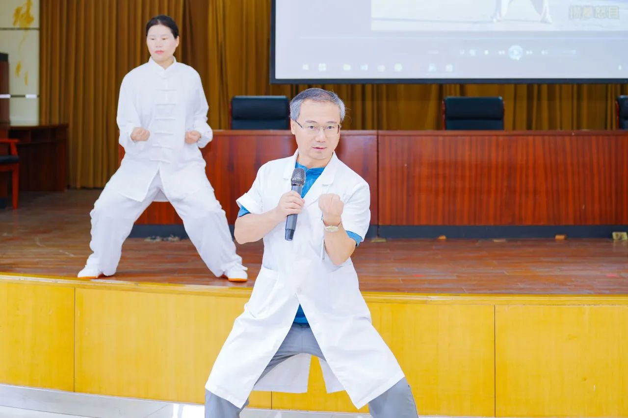 八段錦教學(xué)由中醫(yī)康復(fù)科遲冬清主任主講,作為中國康復(fù)醫(yī)學(xué)會科學(xué)普及工作委員會委員、吳涇鎮(zhèn)公益達(dá)人,遲冬清主任長期致力于中醫(yī)文化的推廣與科普。此次活動中,遲主任團(tuán)隊(duì)以面對面、手把手的教學(xué)方式,為老兵們細(xì)致講解八段錦的基礎(chǔ)動作與核心技巧,深入淺出地解析其“強(qiáng)健臟腑、疏通經(jīng)絡(luò)、調(diào)和氣血”的養(yǎng)生原理,幫助老兵們輕松掌握這一傳統(tǒng)健身功法。活動現(xiàn)場,老兵們認(rèn)真學(xué)習(xí)、積極互動,紛紛表示八段錦動作舒緩流暢,適合日常鍛煉,對改善體質(zhì)大有裨益。