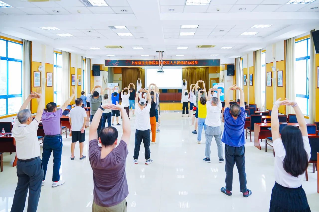 為弘揚(yáng)中醫(yī)傳統(tǒng)文化,關(guān)愛退役軍人健康,8月5日上午,上海藍(lán)生宏德醫(yī)院健康服務(wù)隊(duì)走進(jìn)吳涇鎮(zhèn)退役軍人服務(wù)站,為退役老兵們開展了一場別開生面的“八段錦入門”教學(xué)活動,傳遞中醫(yī)養(yǎng)生智慧,助力老兵強(qiáng)身健體。