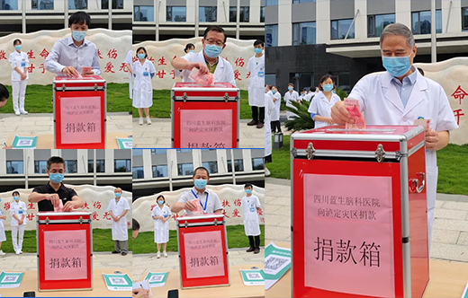 瀘定地震發(fā)生后,四川藍(lán)生腦科醫(yī)院廣大醫(yī)護(hù)工作者對(duì)不幸遇難同胞深感悲痛,對(duì)災(zāi)區(qū)群眾十分牽掛,醫(yī)院黨支部主動(dòng)作為、積極組織,向全體醫(yī)護(hù)工作者發(fā)出倡議,充分發(fā)揚(yáng)“一方有難、八方支援”的精神,大力弘揚(yáng)醫(yī)者仁心、醫(yī)者大愛的高尚情操,倡議廣大黨員、員工積極向?yàn)?zāi)區(qū)人民捐款,力所能及為災(zāi)區(qū)和受災(zāi)群眾貢獻(xiàn)一份自己的力量。