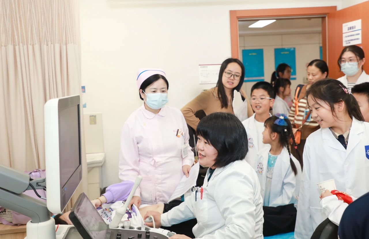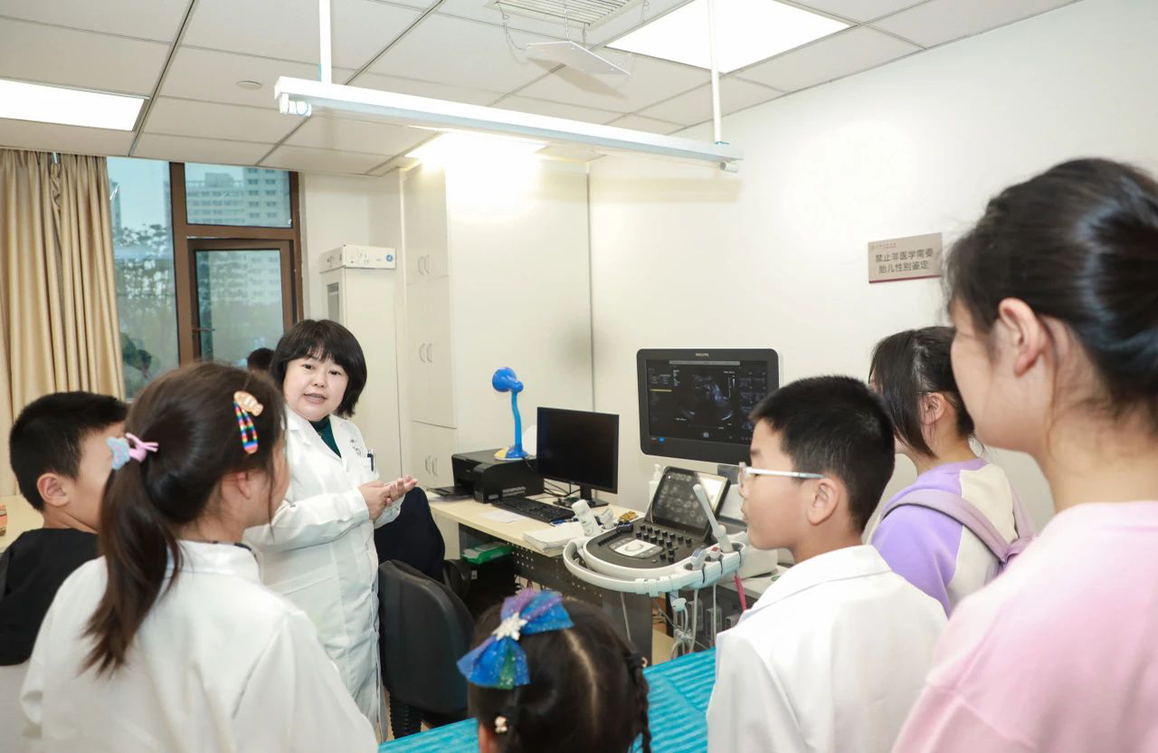 “這些粘稠的液體是什么呀?”在超聲科診室里,小醫(yī)生們好奇地向韓秀清醫(yī)生發(fā)問。“這是醫(yī)用超聲耦合劑,在檢查時(shí)能減少干擾,讓超聲成像更清晰,且對(duì)身體是無害的。”韓醫(yī)生一邊解釋,一邊為孩子們展示了腹部、心臟和頸部血管的彩超檢查。