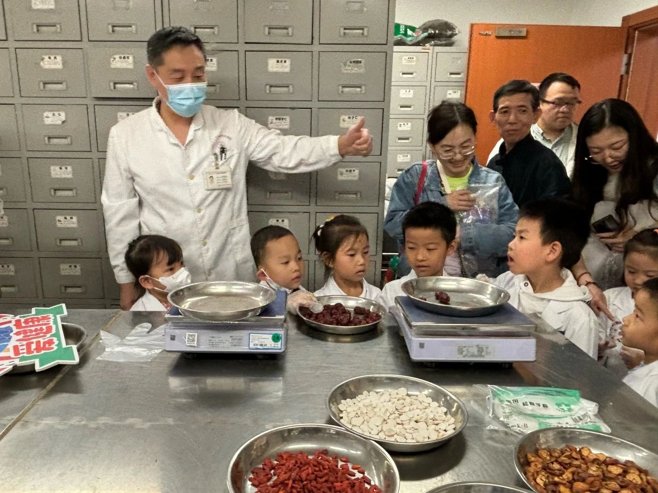 在中藥房,田韶波藥師已經(jīng)準(zhǔn)備好了各種藥材等著大家。“你們知道這是什么藥材嗎?”田藥師手里拿著藥材問道。“我知道,這是山楂。”“這是麥芽。”小醫(yī)生們熟練地說出了好幾種藥材的名字,聽到小朋友們的搶答,田藥師連連夸贊。在田藥師的指導(dǎo)下,小醫(yī)生們通過觸覺、嗅覺與視覺相結(jié)合的方式加深了對(duì)中藥的認(rèn)識(shí),還親手稱重、分裝,體驗(yàn)了一把藥師的工作。
