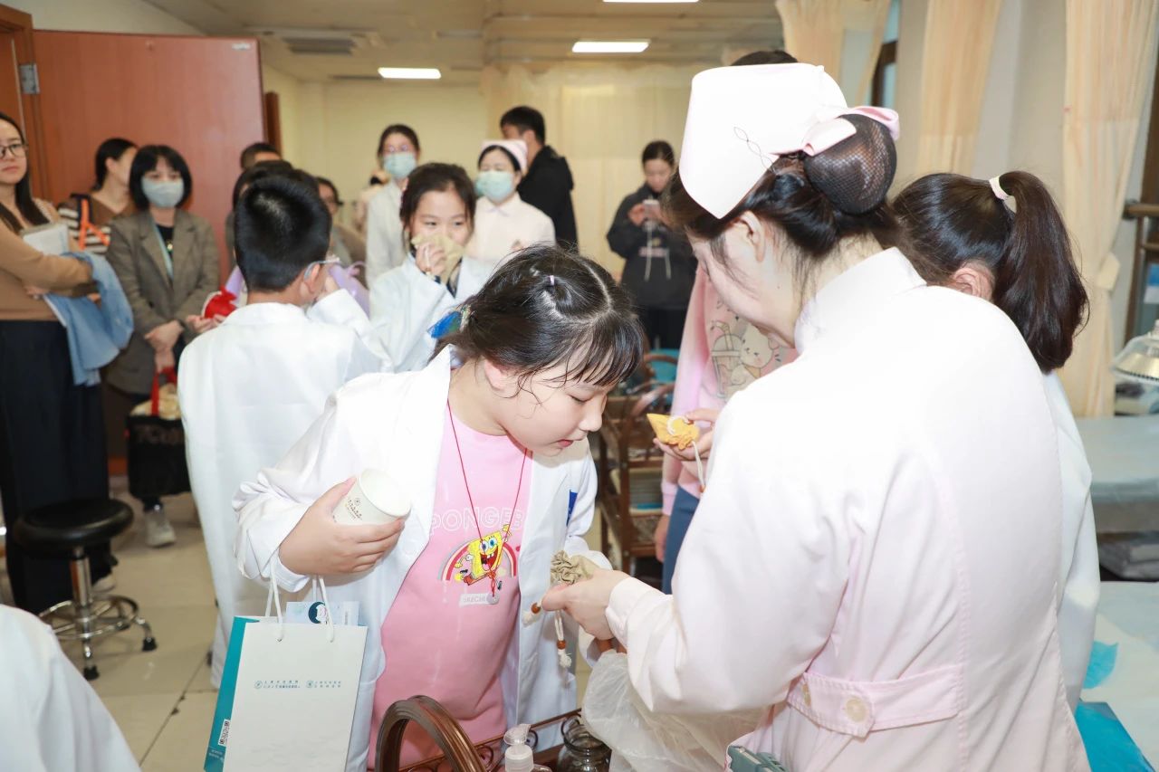 “這個(gè)游走罐,你們知道是做什么的嗎?”中醫(yī)科任婷婷護(hù)士手里拿著一個(gè)小巧的玻璃罐問道。孩子們好奇地?fù)u頭。“這是用來拔罐的,可以幫助我們緩解肌肉疼痛哦!”她一邊演示,一邊為孩子們介紹游走罐的神奇之處,孩子們看得目不轉(zhuǎn)睛。講解結(jié)束后,任婷婷還給“小醫(yī)生們”送上了中醫(yī)科精心制作的香囊。