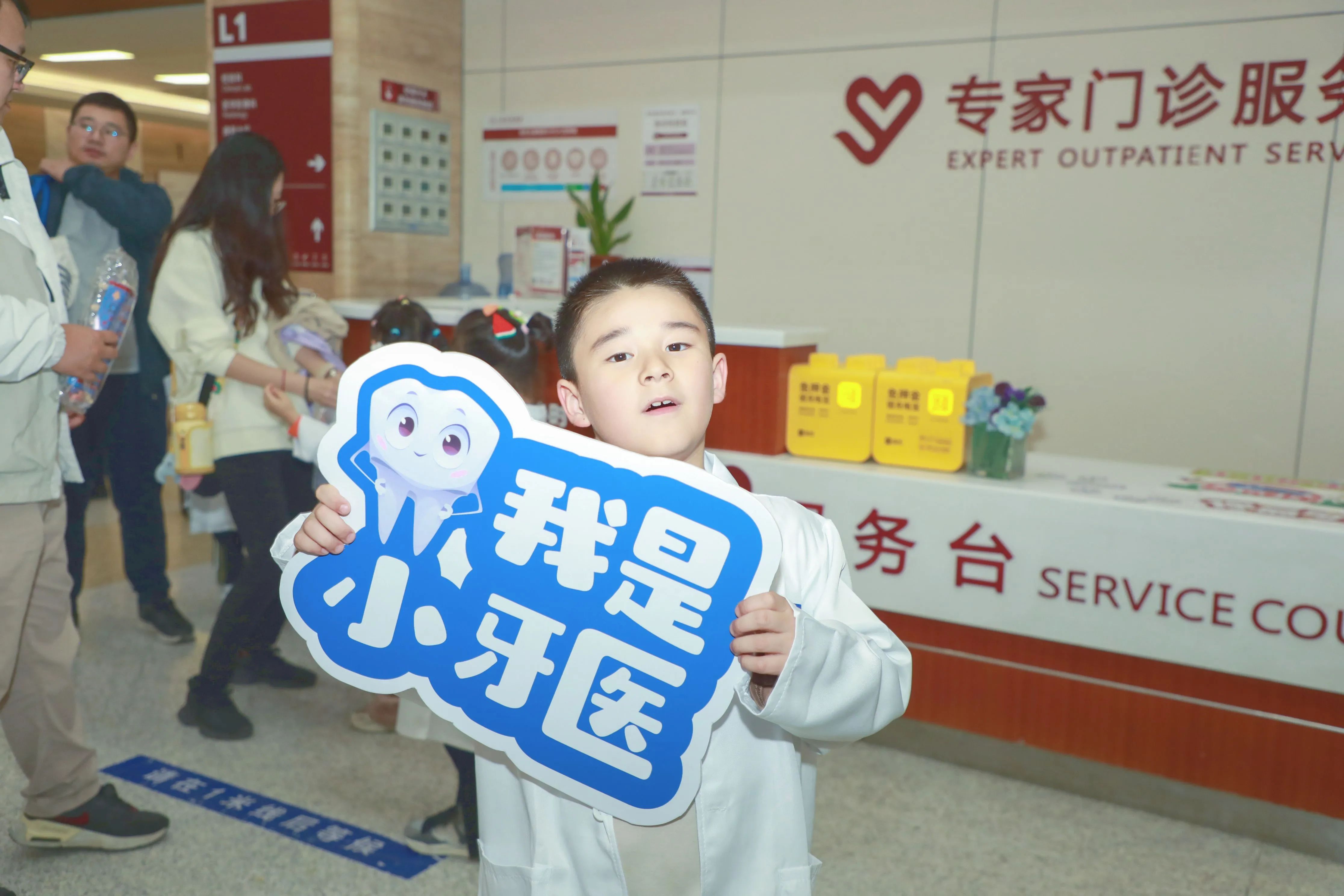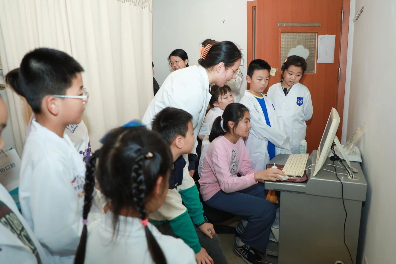 下午2:30,孩子們穿上了定制的白大褂,興奮地聚集在門診大廳,拍完了美美的合影,“小醫(yī)生”們就迫不及待地“上崗”了。